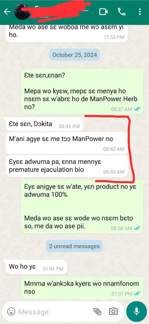 Nea edi kan da a me de product no yɛɛ ho, meho yɛɛ me dɛ sɛnea ɛwɔ mu no na me ntumi nnkɔ da 30 minutes, ɔbaa no nso ntumi nni no ho.