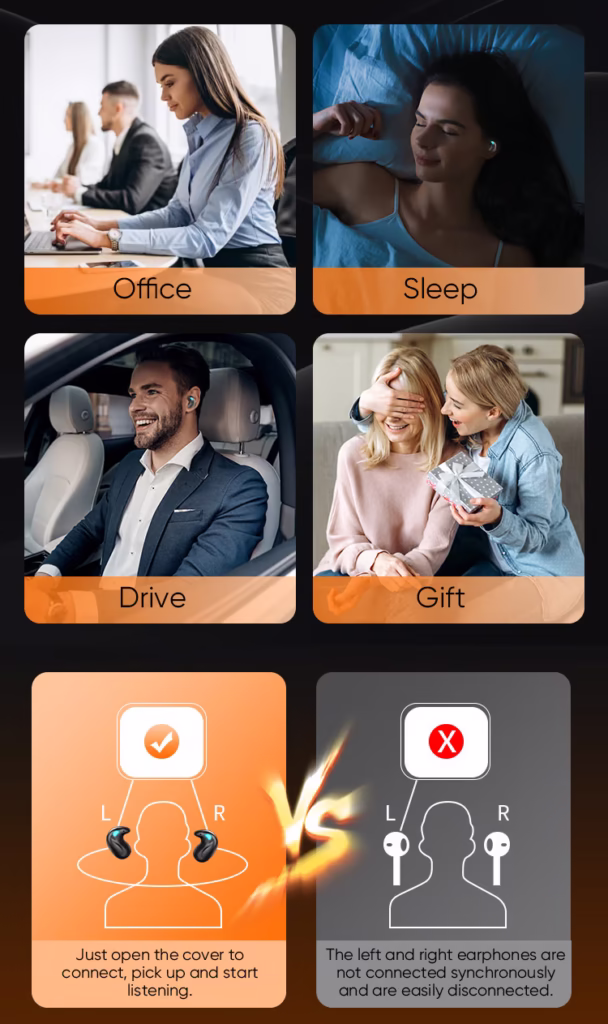 Say goodbye to uncomfortable headphones! The Sleep Bluetooth Earbuds are specially designed for maximum comfort while sleeping. With an ultra-lightweight, ergonomic design and noise isolation, you can enjoy relaxing music, white noise, or podcasts without discomfort.